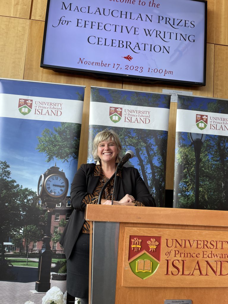 I was so excited to be asked to speak recently at a University of Prince Edward Island event, the MacLauchlan Awards for Effective Writing. It celebrates the excellence across all faculties, not only in liberal arts, but all social sciences and business. They asked me to share a few words about my highlights as a a writer. But all of a sudden, my mind filled not with my accomplishments, but with vulnerability, rejection letters, my unfinished plays. The time I couldn’t get the review done. The time I didn’t make my deadline.